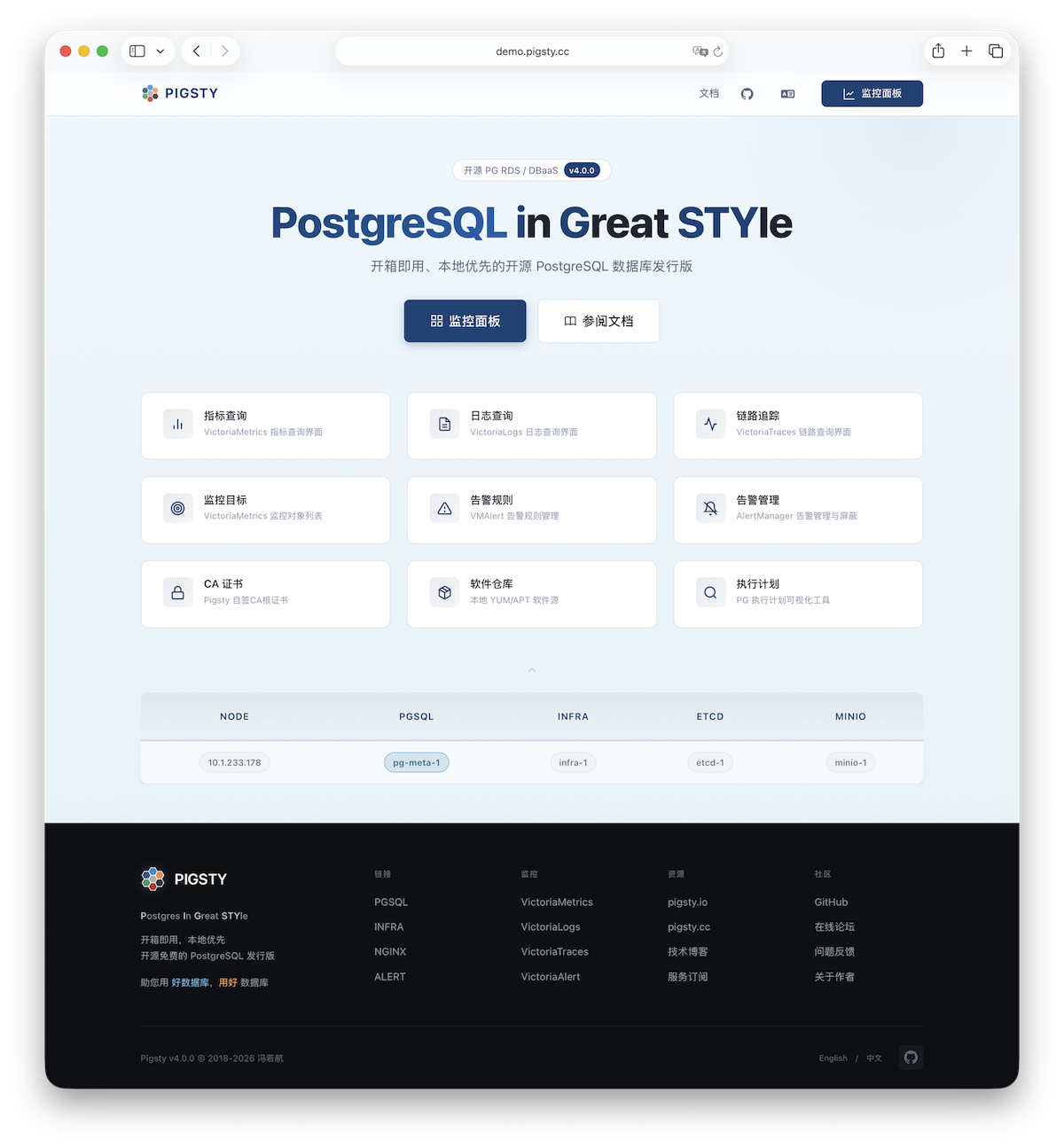 pigsty.io(全球) curl -fsSL https://repo.pigsty.cc/get | bash # 安装最新稳定版本