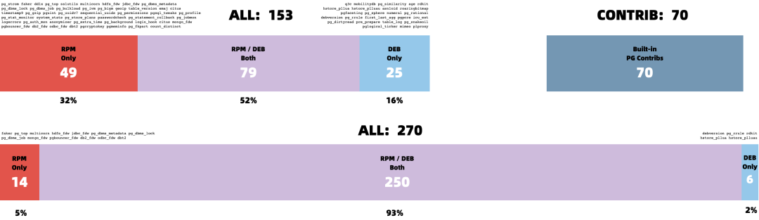 Pigsty 搭建了一个跨发行版的流水线,将社区自研的新扩展、历久弥新的老模块,以及官方 PGDG 包整合在一起,让它们能在 Debian、Ubuntu、Red Hat 系列等各大系统上一键无缝安装。