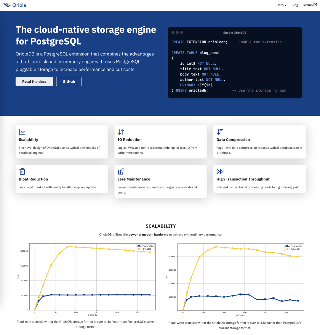 Supabase 最近的一个重要动作是收购 OrioleDB —— 一个专注于提升 PostgreSQL OLTP 性能的内核分支。目前这项功能在 Supabase 中被标记为 Beta,作为用户的可选项存在。Pigsty 正在准备 OrioleDB 的 RPM/DEB 包,确保即使以后 Supabase 使用它作为主干,Pigsty 也能提供支持。