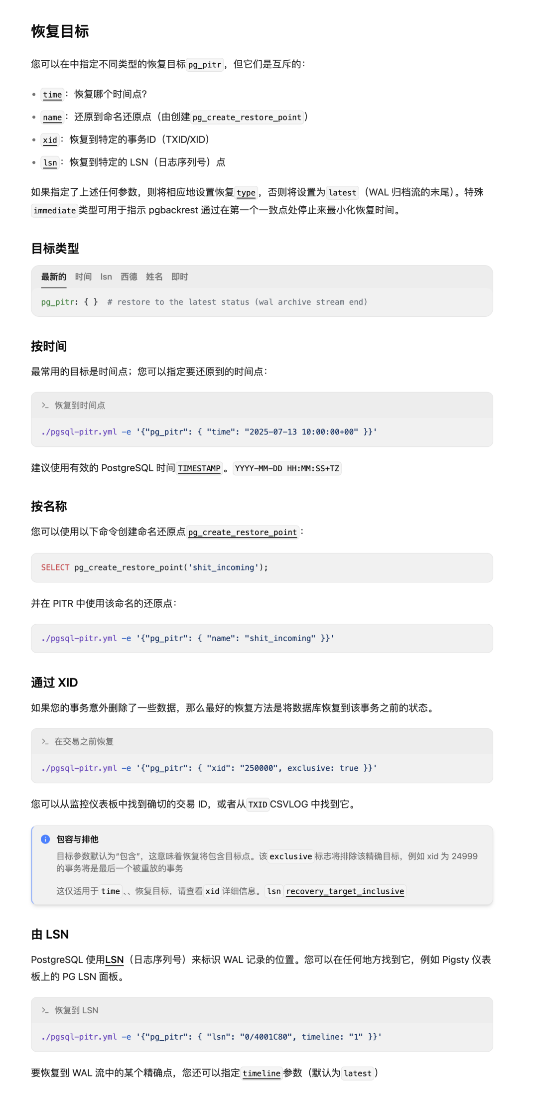 - 生成并执行 pgbackrest PITR 恢复命令至指定目标位点